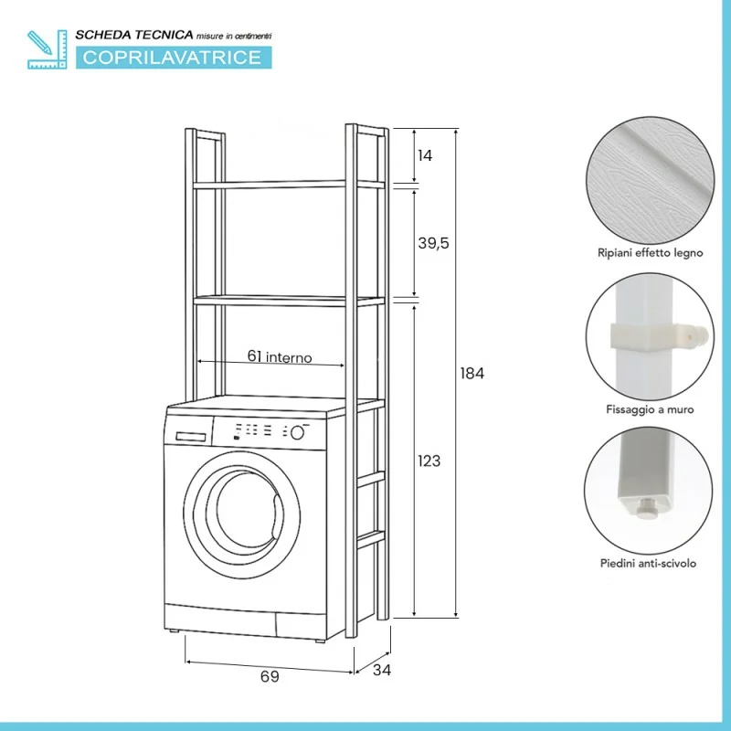 Scaffale sopra lavatrice caratteristiche tecniche: