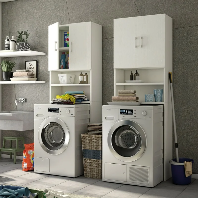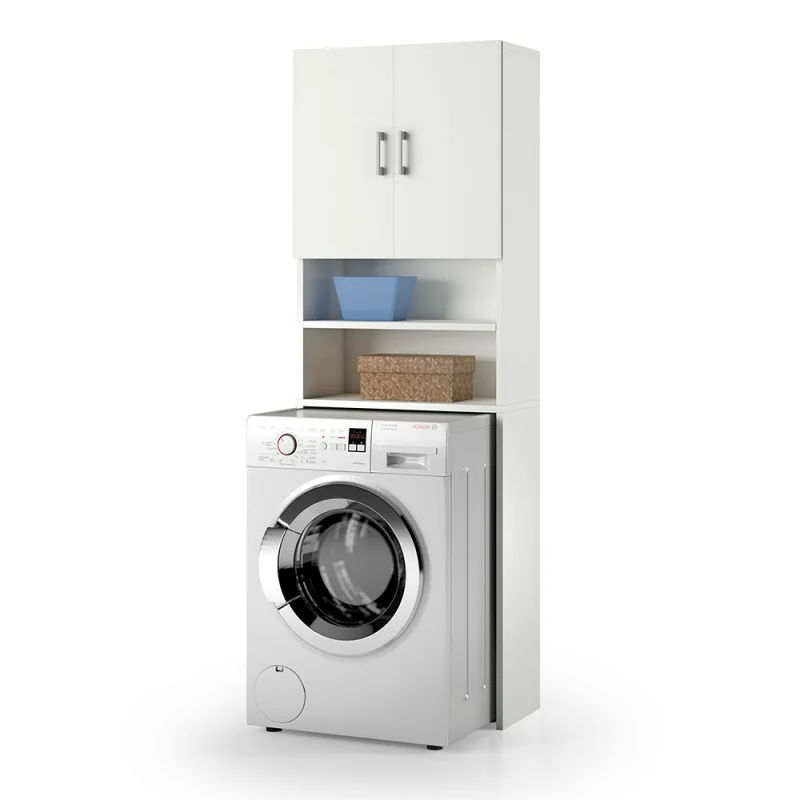 Mobile coprilavatrice multiuso in legno bianco 2 ante e 3 mensole