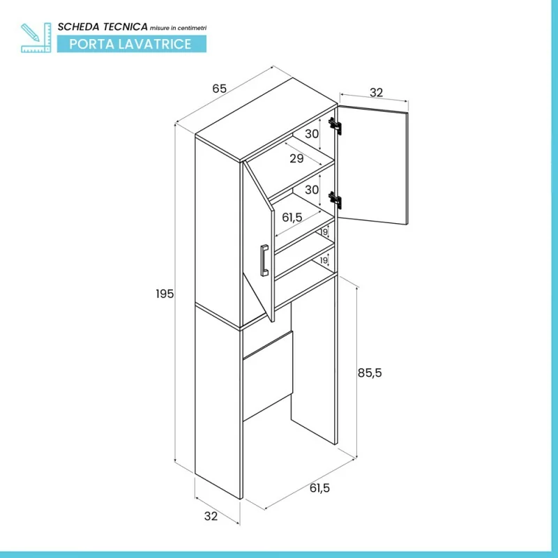 • Dimensioni: L 65 x P 32 x H 195 cm;