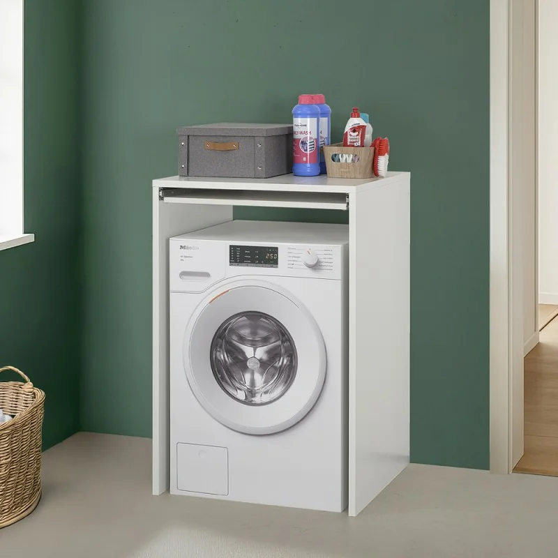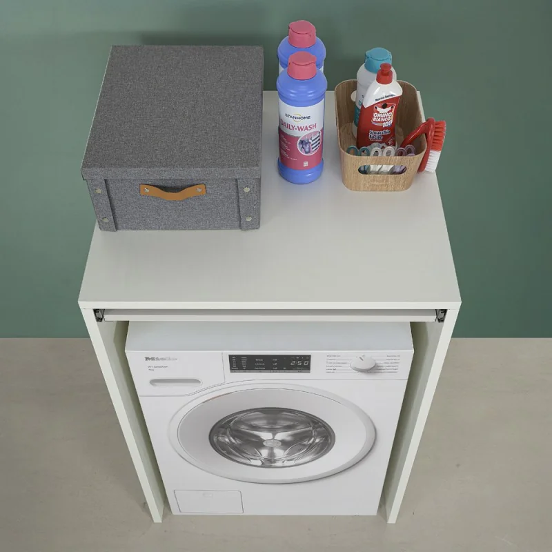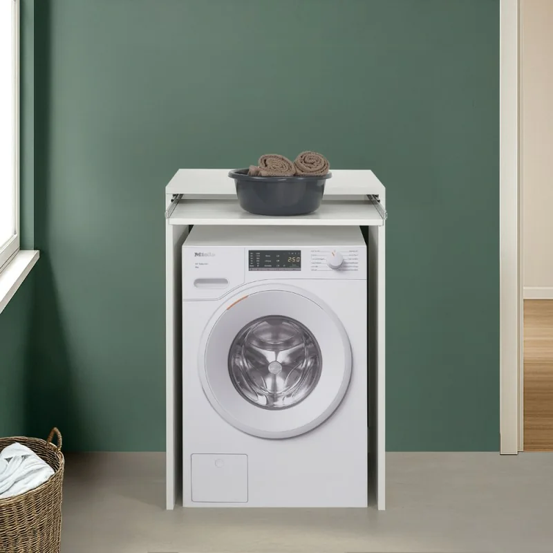 Il mobile coprilavatrice Pilar è la soluzione intelligente per nascondere il tuo elettrodomestico con stile, ottimizzando al massimo lo spazio in lavanderia o in bagno. Realizzato in legno bianco, questo mobile si integra perfettamente in qualsiasi ambiente, trasformando la lavatrice in un elemento d'arredo elegante e funzionale.