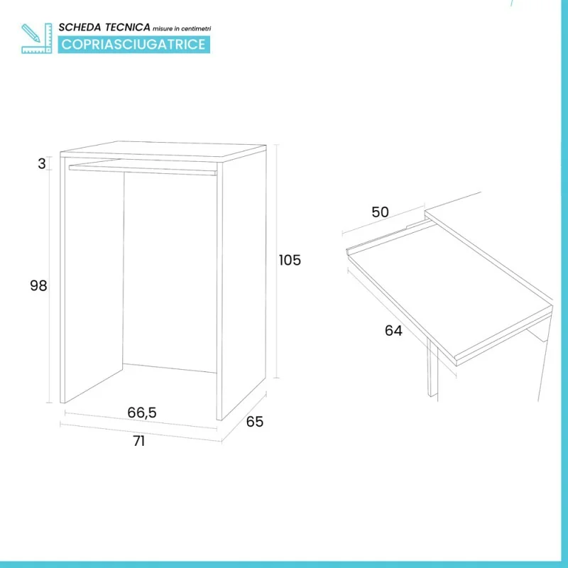 • Dimensioni coprilavatrice: L 70 x P 65 x H 105 cm;