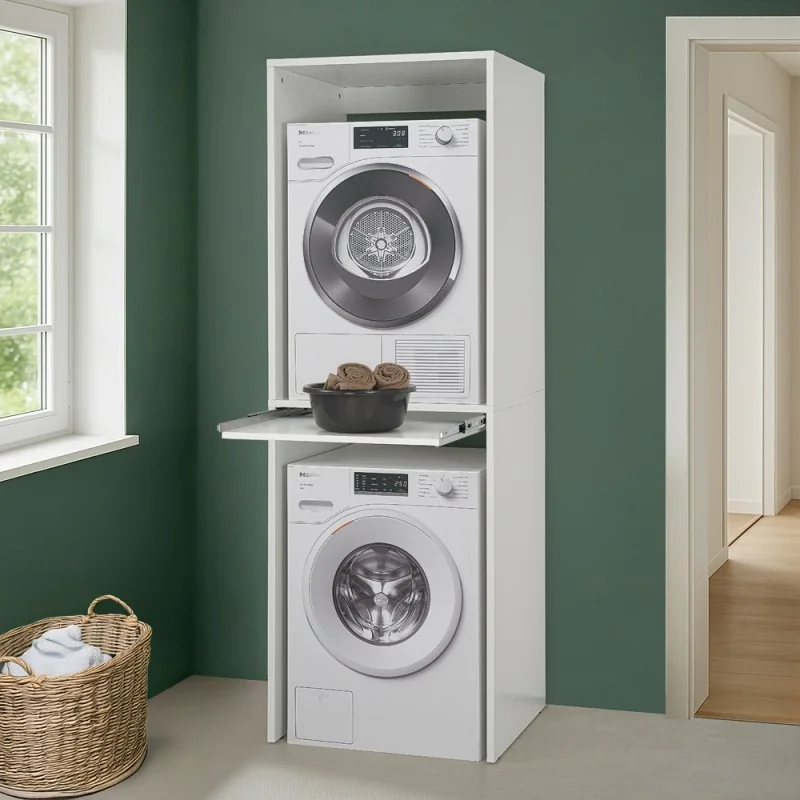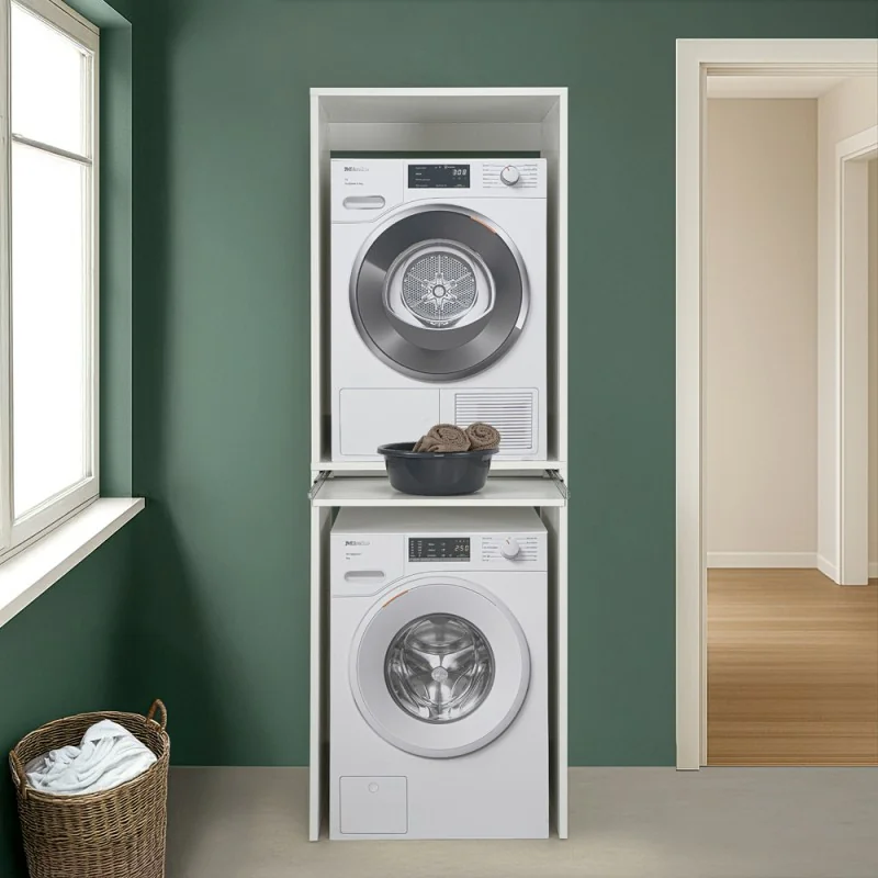 Set 2 pezzi lavanderia colonna lavasciuga in legno bianco linea Pilar