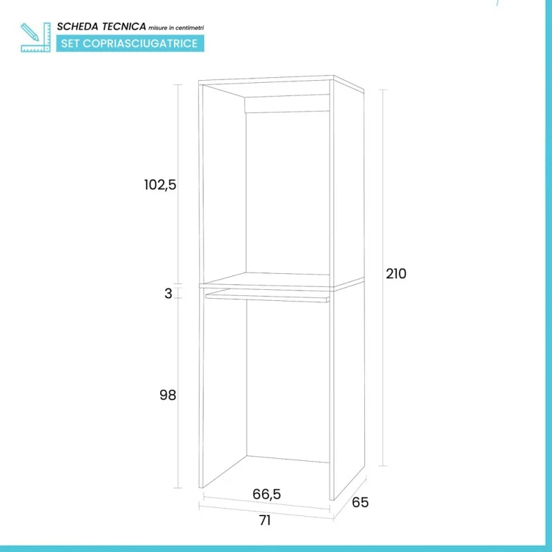 • Dimensioni copriasciugatrice: L 70 x P 65 x H 105 cm;