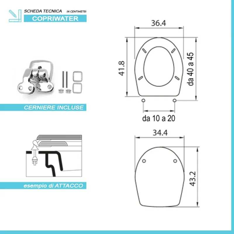 • INCLUDE ciambella,coperchio e set cerniere in acciaio;