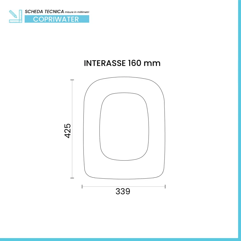 • Dimensioni: P 42,5 x L 33,9 cm e interasse 16 cm;