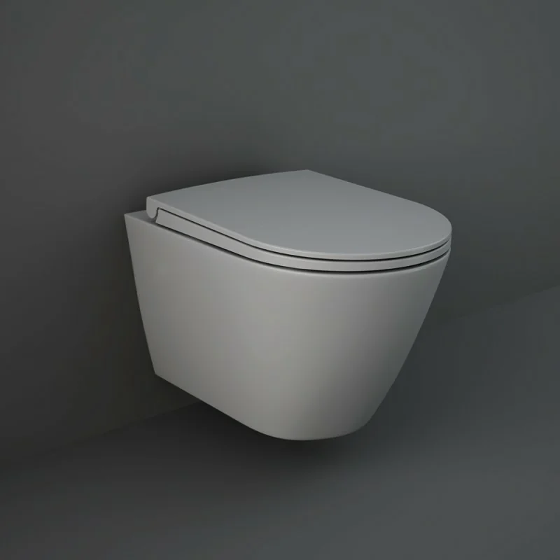 Il copriwater è realizzato in termoindurente grigio opaco,dispone di pratica chiusura soft-close e sgancio rapido,ideale per agevolare le operazioni di pulizia. Il sedile è modello slim,originale per il wc sospeso e filomuro Feeling di Rak Ceramics.