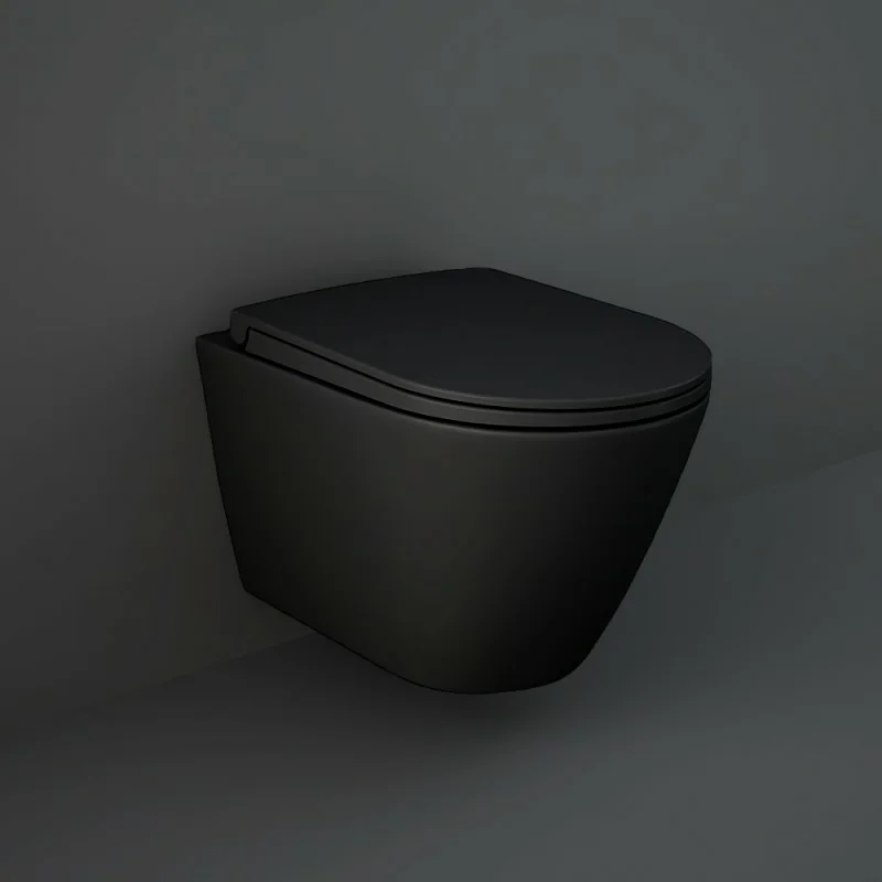 Il copriwater è realizzato in termoindurente neroopaco,dispone di pratica chiusura soft-close e sgancio rapido,ideale per agevolare le operazioni di pulizia. Il sedile è modello slim,originale per il wc sospeso e filomuro Feeling di Rak Ceramics.