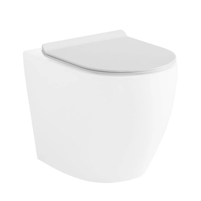 Sedile termoindurente per serie Osaka, modello traslato con chiusura rallentata soft-close. Resistente, igienico e facile da installare.