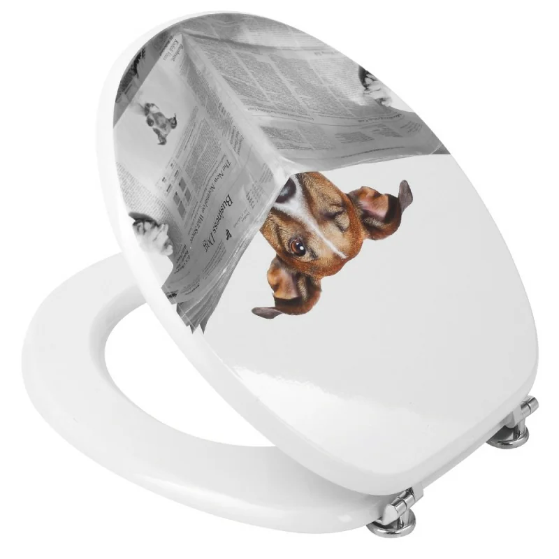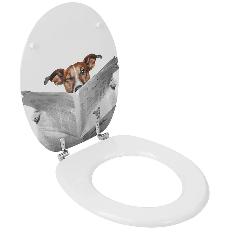 Copriwater universale in legno MDF stampato bau con cerniere regolabili