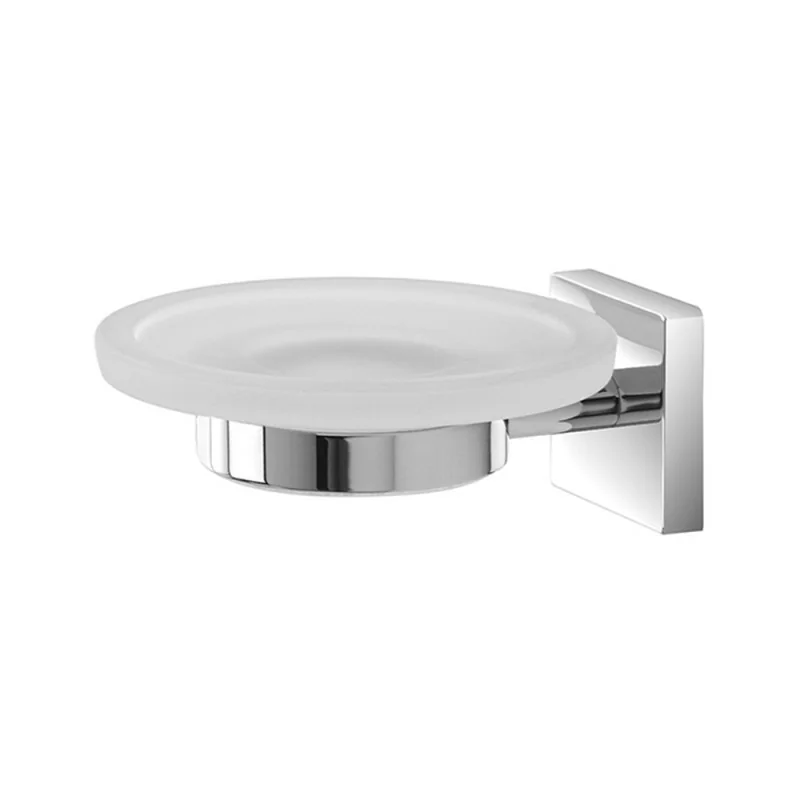 Porta saponetta da parete in acciaio cromato e vetro satinato con doppia modalità di fissaggio serie Easy