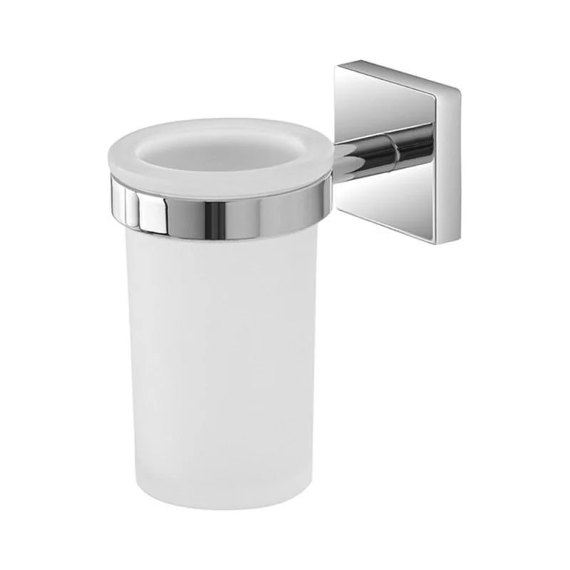 Porta spazzolino da parete in acciaio cromato e vetro satinato con doppia modalità di fissaggio serie Easy