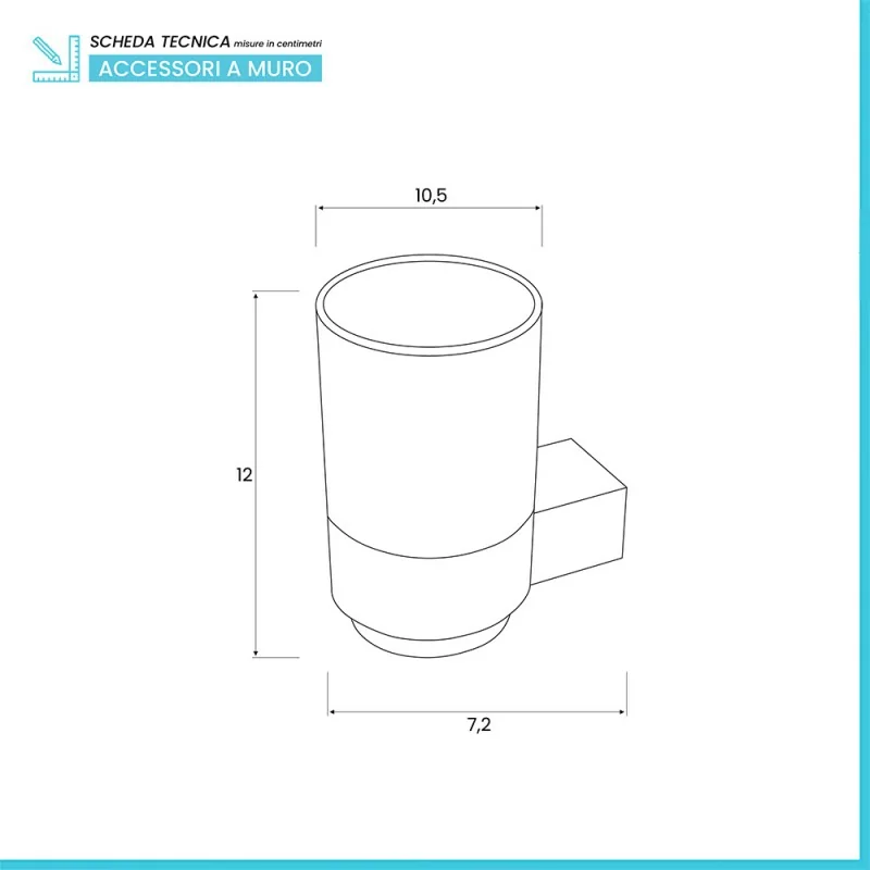 Eleganza e stile profusi in questo porta spazzolino ideale per arredare con gusto il tuo bagno. Realizzato con struttura in alluminio resistente all'usura nel tempo e bicchiere in ceramica smaltata bianca antibatterica. Viene comodamente installato a parete mediante il kit di fissaggio incluso.
