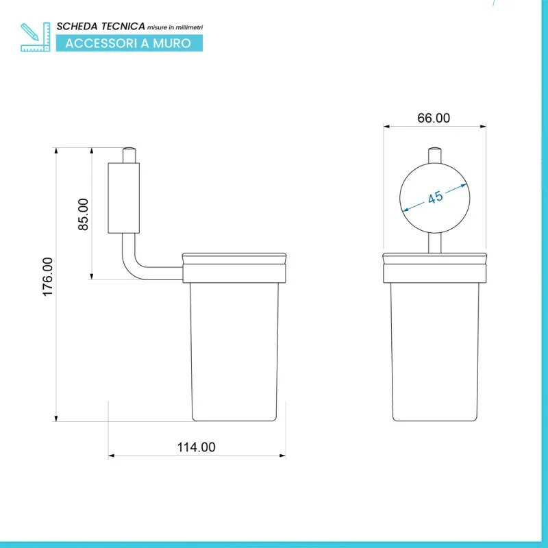 Porta spazzolino a muro con doppio fissaggio caratteristiche tecniche: