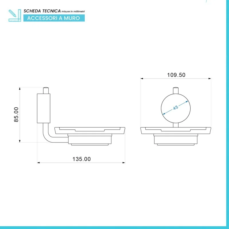 Porta sapone a muro con doppio fissaggio caratteristiche tecniche: