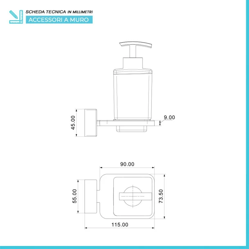 Dispenser sapone a muro con doppio fissaggio caratteristiche tecniche: