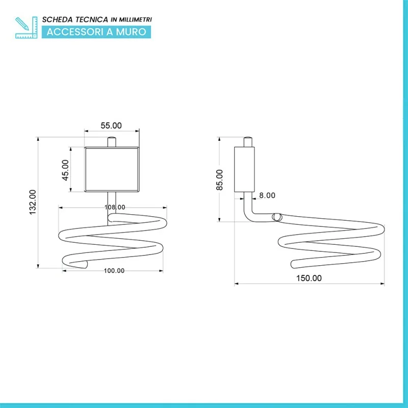 Porta phon a spirale da muro con doppio fissaggio caratteristiche tecniche: