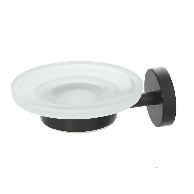 Porta sapone a parete in acciaio nero opaco e vetro satinato con viti incluse linea Chic Black
