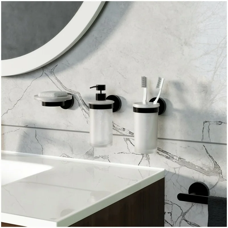 Porta saponetta in acciaio nero opaco e vetro satinato caratteristiche tecniche: