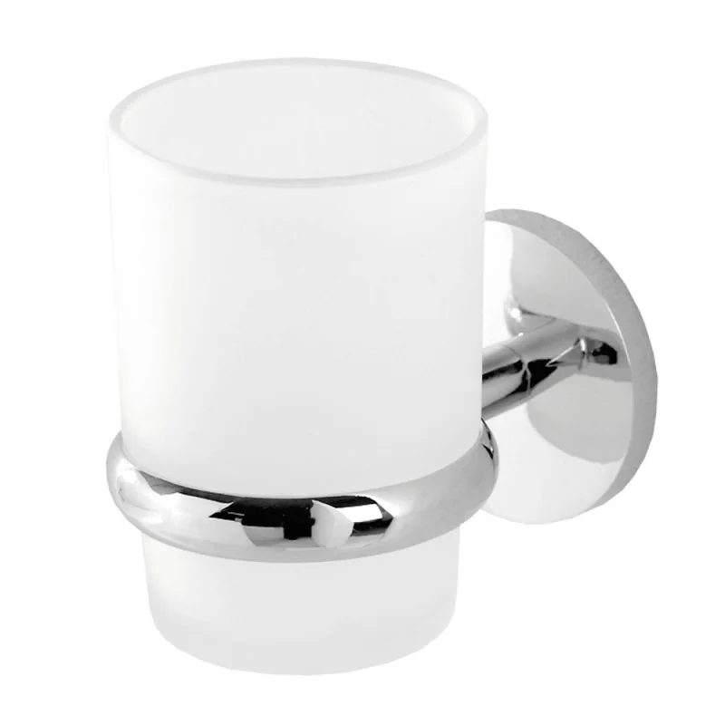 Il portaspazzolino a muro è composto dal bicchiere in vetro satinato e dal supporto in acciaio cromato con un comodo fissaggio alla parete incluso di viti. Fanno parte della stessa linea diversi accessori complementari:portarotolo,portasapone,appendino,mensola.