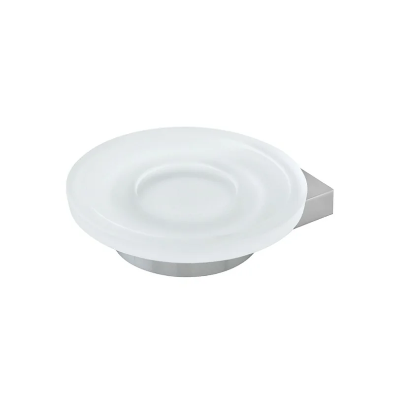 Porta sapone a muro con piattino tondo in vetro satinato e supporto quadrato in acciaio cromato, incluse viti