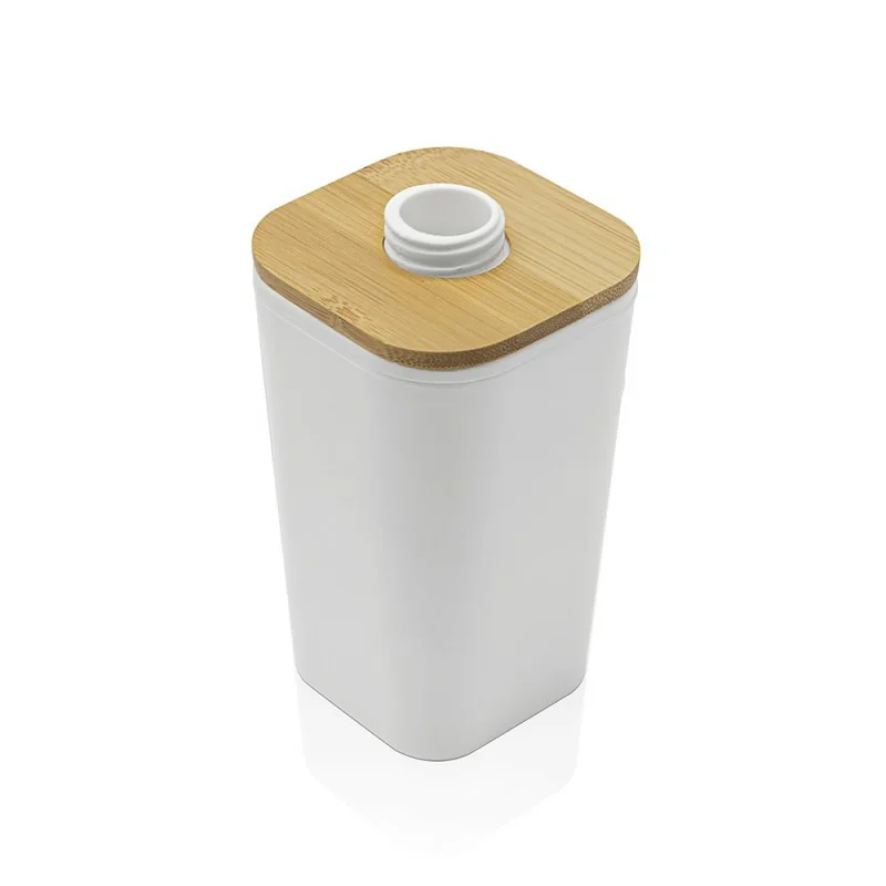 Dispenser sapone in finitura bianca opaca con dettagli in bambù Dosatore sapone liquido in finitura bianca opaca con dettagli in legno di bamboo Scheda tecnica dispenser sapone in finitura bianca opaca con dettagli in bambù Diffusore sapone in plastica bianca e legno di bamboo con erogatore a pompa Dispenser sapone liquido in plastica bianco e legno di bamboo Erogatore a pompa con molla resistente a lunga durata Set completo accessori bagno moderni in finitura bianca opaca con dettagli in bambù