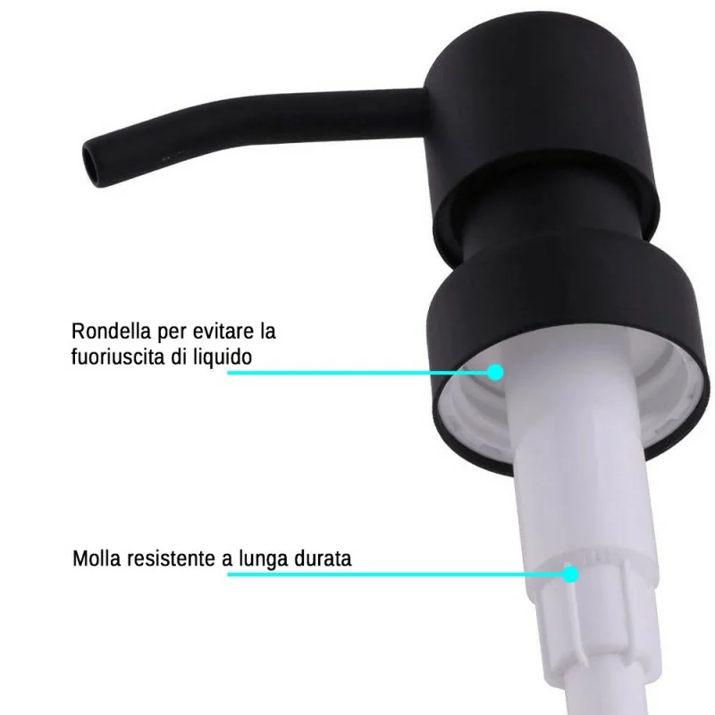La linea proposta è grigia e si adatta ad ogni stile e tipologia d'arredo. L'erogatore del dispenser è dotato di rondella nella parte superiore,per evitare la fuoriuscita del liquido,e di molla nella parte inferiore,per garantire una resistenza a lunga durata.