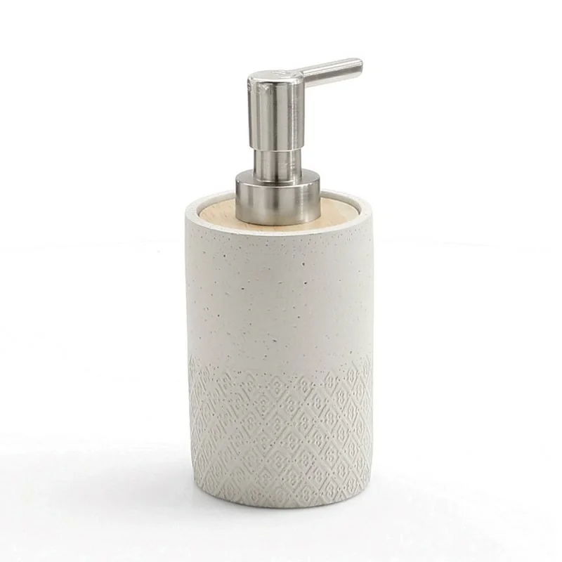 Portasapone liquido d'appoggio grigio Gedy serie Afrodite in cemento e bambù