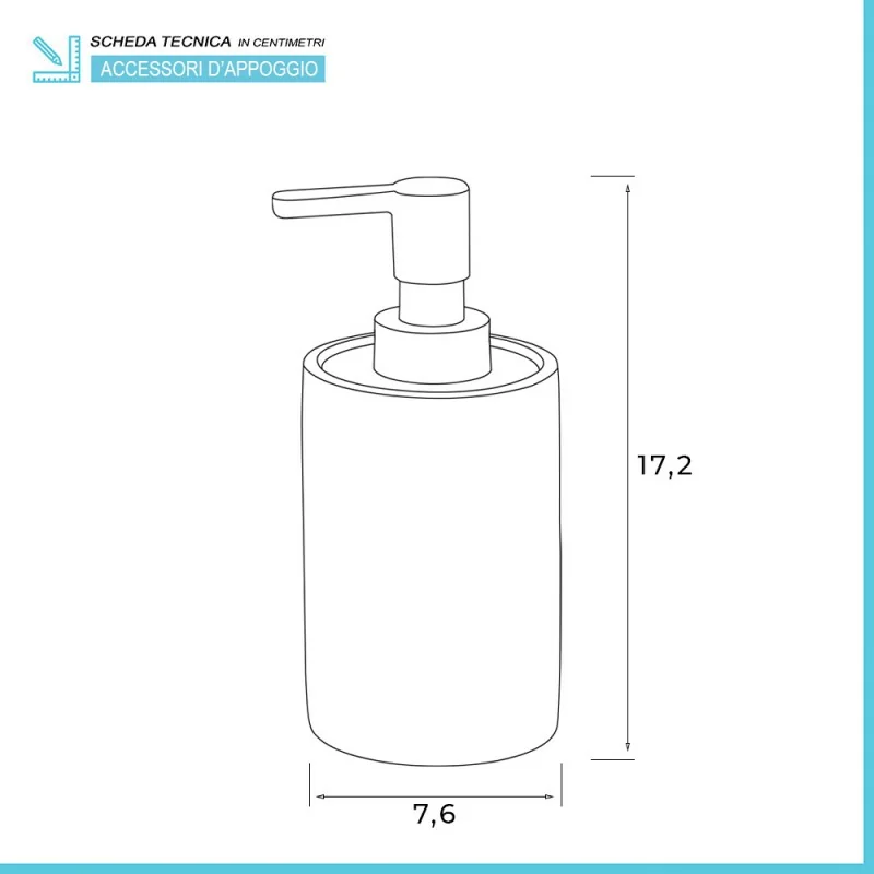 Il dispenser da appoggio per sapone liquido Gedy serie Afrodite arricchisce il tuo bagno con gusto contemporaneo,realizzato in cemento con finitura grigia e particolari in bamboo è completo di erogatore in ABS cromato con finitura satinata. La pompa dosasapone è removibile per potere facilitare il rabbocco del liquido lavamani,arrivando ad una capacità di 130 ml. La gamma di accessori bagno da appoggio Afrodite può essere completata con tutti gli altri elementi:portasapone,portaspazzolino,portaoggetti e portascopino