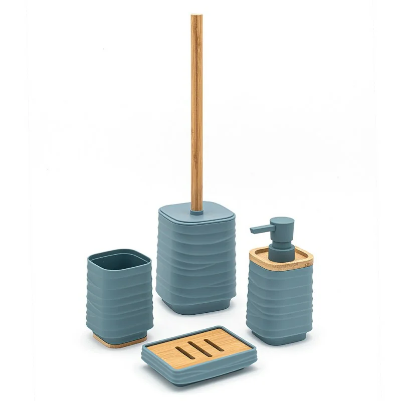 Lasciati travolgere dalle forme sinuose e moderne della collezione di accessori bagno Wave,realizzata interamente in plastica abs con inserti in legno di bambù naturale.