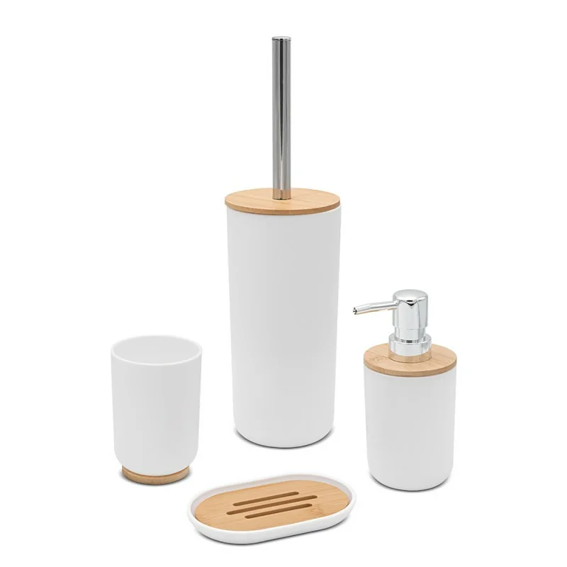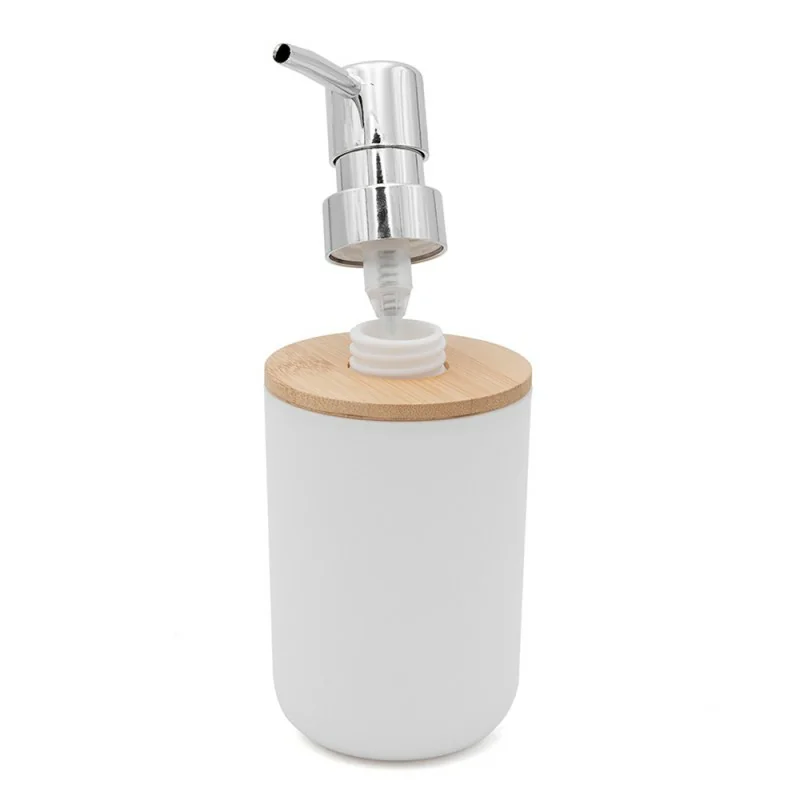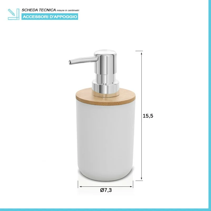 Dispenser sapone – linea Surf in abs colore bianco con dettagli in legno di bambù