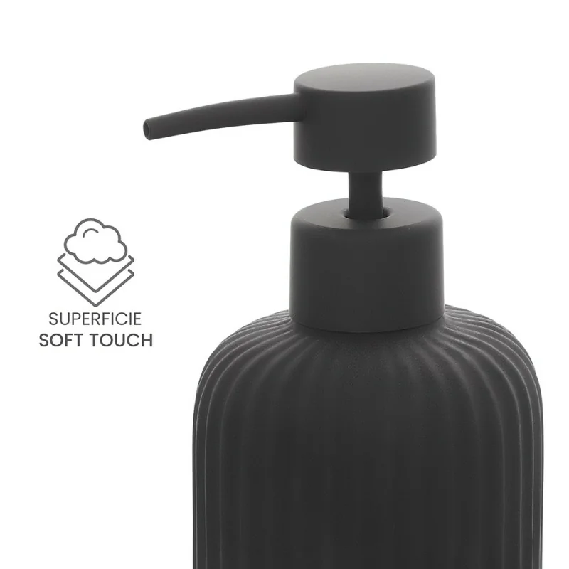 Dispenser sapone nero in ceramica soft touch capienza 330 ml Spring