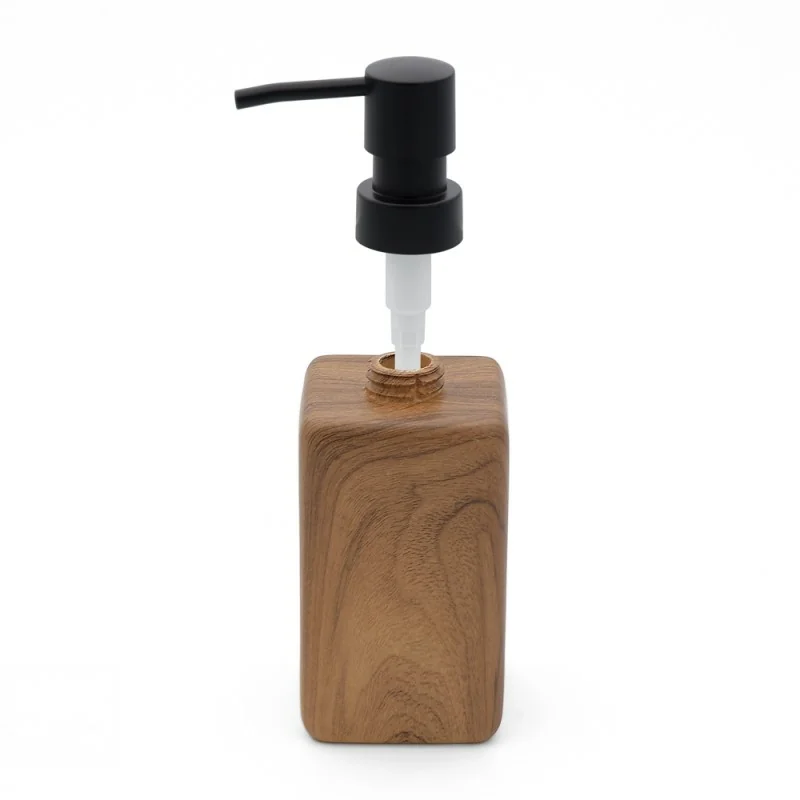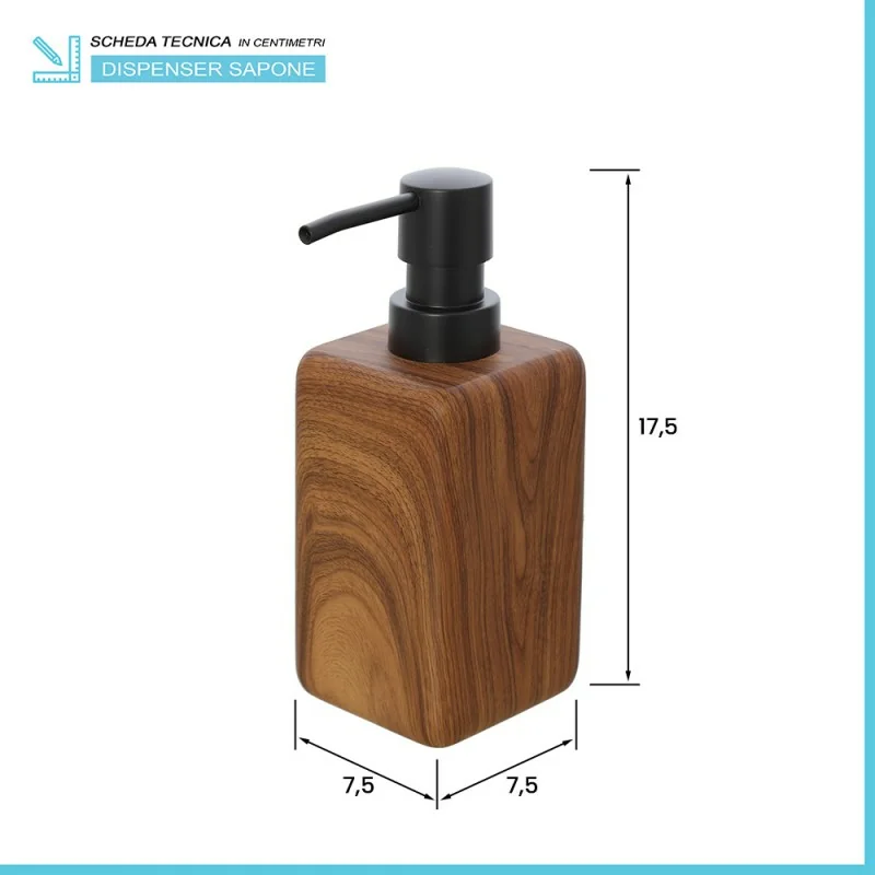 Dispenser bagno d’appoggio ricaricabile con sapone liquido, dotato di erogatore con pump   Realizzata in  poliresina dall’effetto legno...