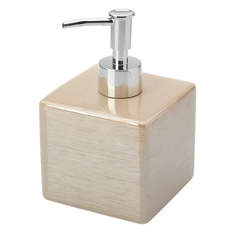 Dispenser Sapone In Ceramica Lucida Beige A Forma Di Cubo