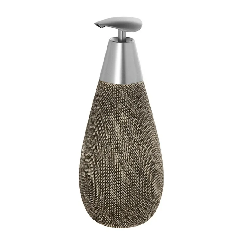 Il dispenser da appoggio fa parte di un Set di accessori dal gusto etnico. Oggetti indispensabili alla tua esperienza di comfort nell'ambiente bagno senza rinunciare ad eleganza e personalità. Il dispenser per sapone liquido in ceramica,è utile vicino al lavabo. La collezione si caratterizza per un gusto etnico e una trama con texture geometrica molto fine e particolare. L'acciaio satinato del dispenser dona un ulteriore tocco moderno ed elegante alla serie.