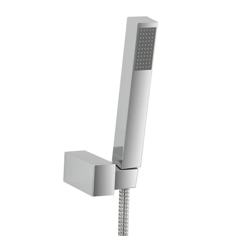 Set doccia - cromato con doccino quadrato in ABS,tubo flessibile antitorsione e presa acqua con supporto