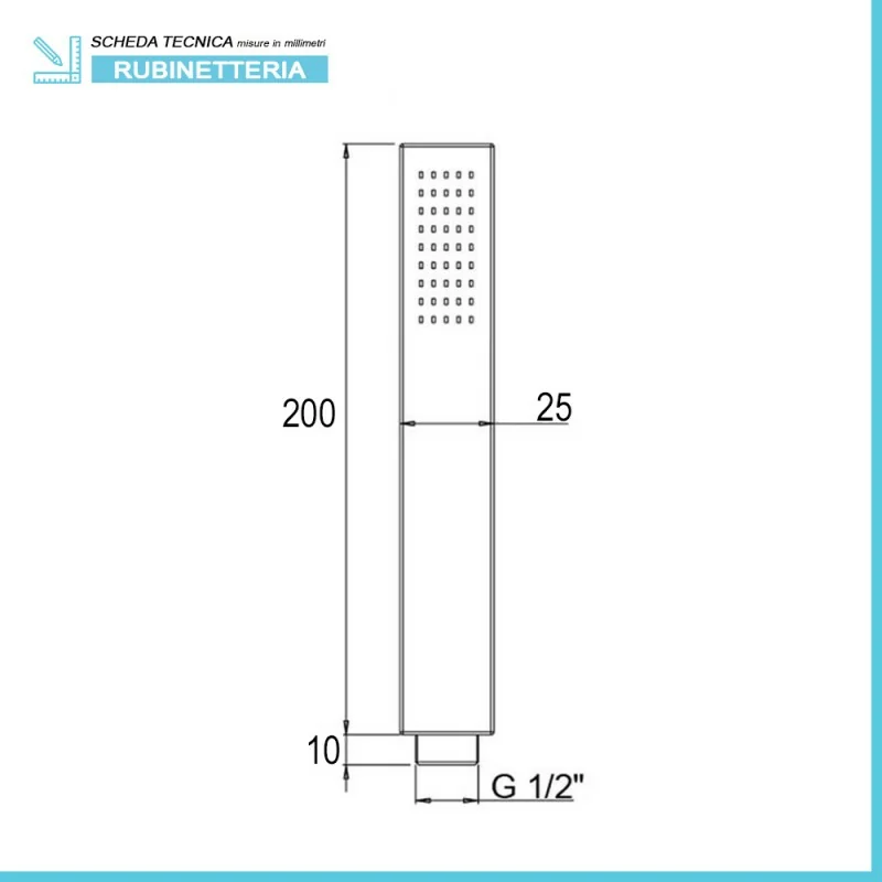 Doccetta quadrata – monogetto con ugelli anticalcare e attacco standard da G ½”
