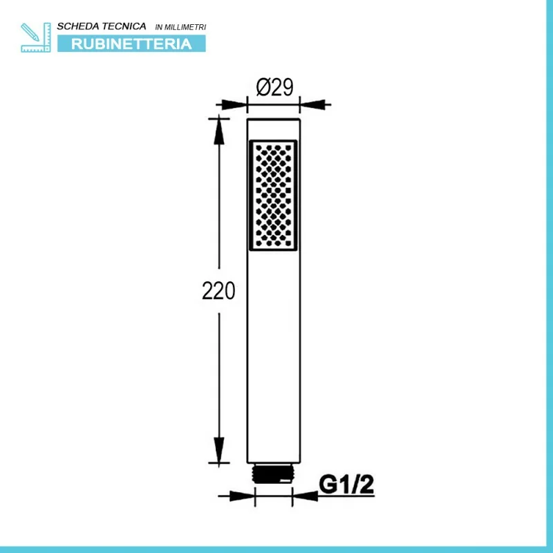 Doccino tondo – H 22 cm e diametro 2,9 cm,ugelli anticalcare e attacco standard da G ½”