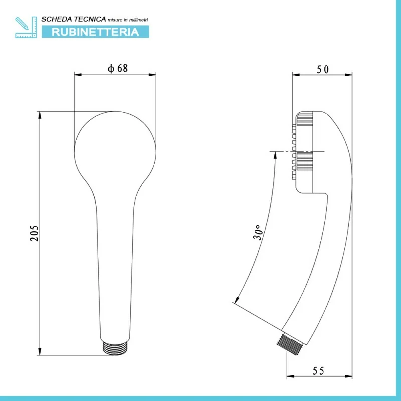 Doccetta monogetto - in ABS bianco per doccia con ugelli anticalcare ed attacco standard