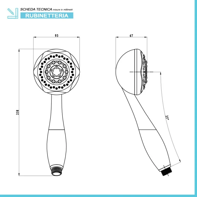 La doccetta è realizzata in ABS dalla finitura Cromo con inserti satinati,impugnatura comoda e modalità multigetto a 5 funzioni,che dà la possibilità di scegliere il flusso dell'acqua sul proprio corpo.