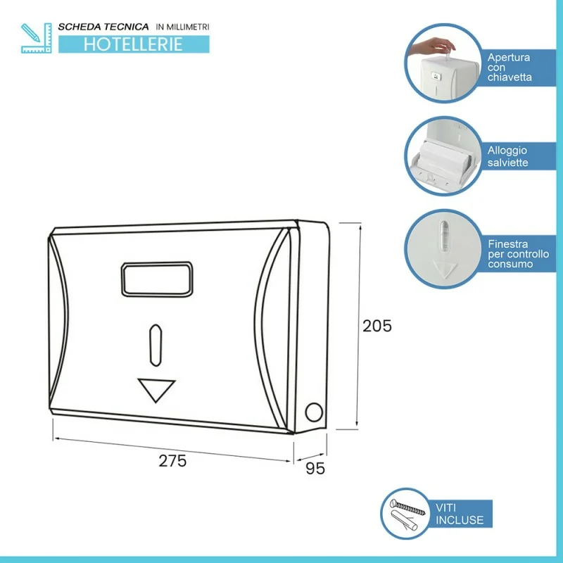 Distributore salviette caratteristiche tecniche: