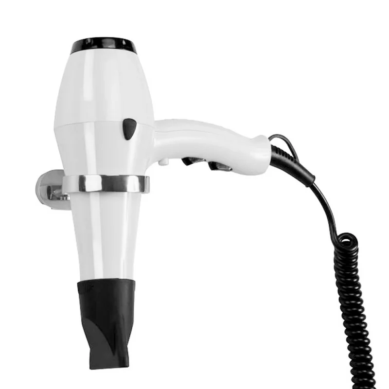 Il blocca cavo presente,eliminerà completamente il fastidio tipico del trascinamento del cavo durante l'atto di asciugatura dei capelli. Il supporto murale ad anello si delinea come accessorio da hotellerie fondamentale,per una giusta e sempre pratica collocazione del proprio asciugacapelli hotel.