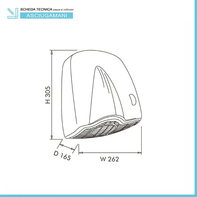 Asciugamani elettrico con motore a induzione 1850W in ABS bianco Dimensioni asciugatore mani elettrico con motore a induzione 1850W in ABS bianco Scheda tecnica asciugamano ad aria  con motore a induzione 1850W in ABS bianco