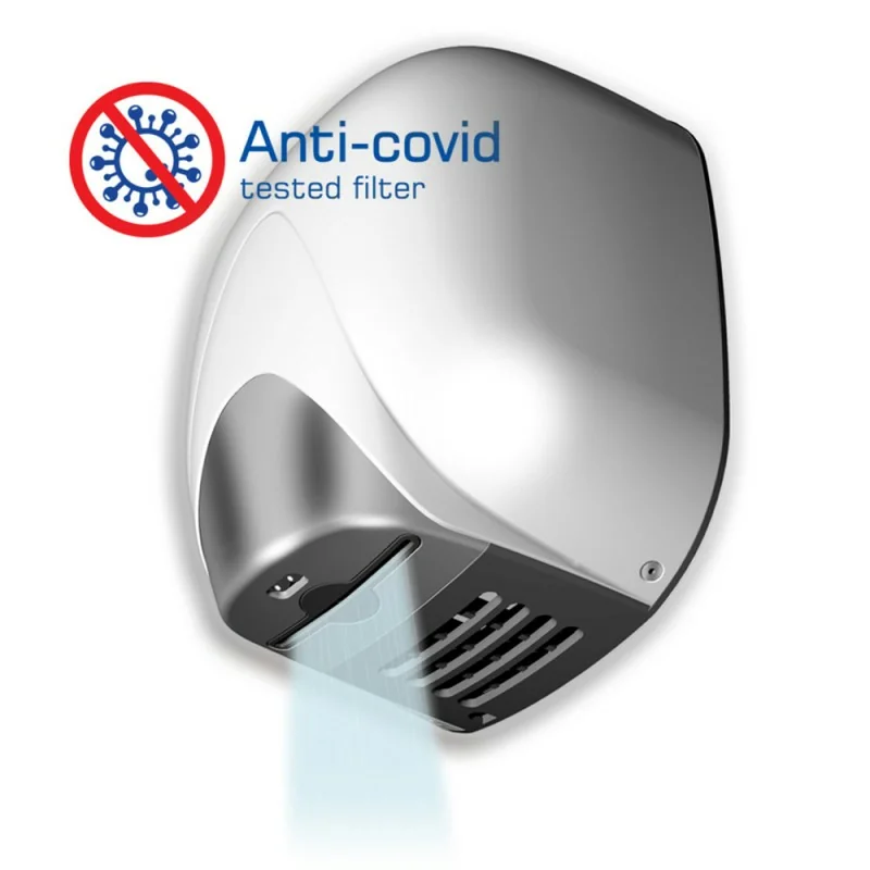 Dotato di un potente motore ad alta pressione, genera un flusso d’aria che supera i 325 km/h, permettendo di asciugare completamente le mani in soli 10-15 secondi. Un grande vantaggio non solo in termini di tempo, ma anche di risparmio: questo asciugatore consente infatti di ridurre i consumi energetici dell’85-90% rispetto ai modelli tradizionali.