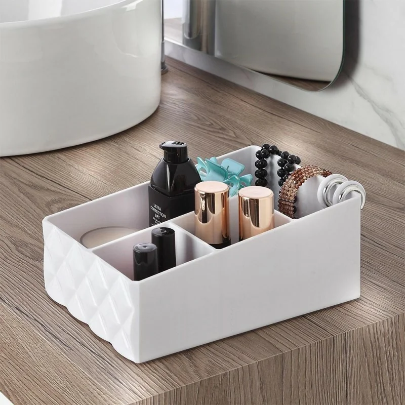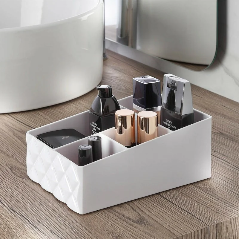 Porta trucchi organizer da bagno in plastica bianca con 4 scompartimenti