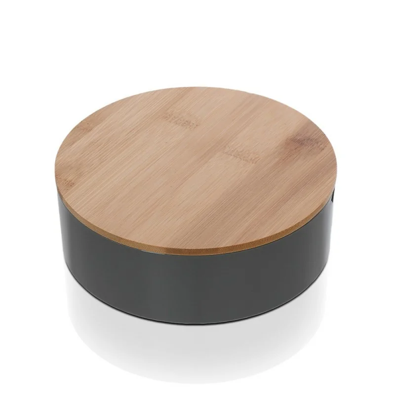 Porta trucchi da bagno tondo in plastica grigia e bamboo completo di specchio Organizer porta trucchi tondo in plastica grigia completo di specchio con dettagli in legno di bamboo Scheda tecnica porta trucchi da bagno tondo in plastica grigia e bamboo completo di specchio Organizzatore cosmetici tondo completo di specchio con dettagli in bamboo disponibile in 3 differenti colorazioni Porta trucchi organizer tondo in plastica grigia completo di specchio con dettagli in legno di bamboo Organizzatore per trucchi tondo in plastica grigia completo di specchio con dettagli in legno di bamboo