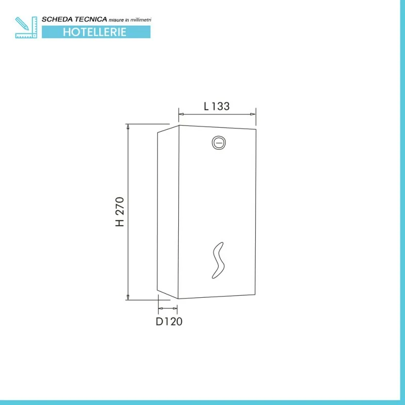 Realizzato in acciaio INOX AISI 430 in finitura brillante,ha una capienza di 500 fogli piegati a C. Oltre al kit di fissaggio incluso in confezione,ha anche una serratura antivandalo in metallo ed una comoda finestra trasparente per il controllo del livello della carta.