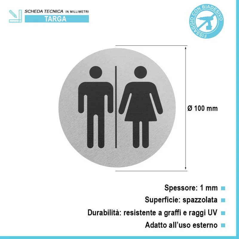 Targhetta wc uomini e donne in alluminio spazzolato fissaggio con biadesivo