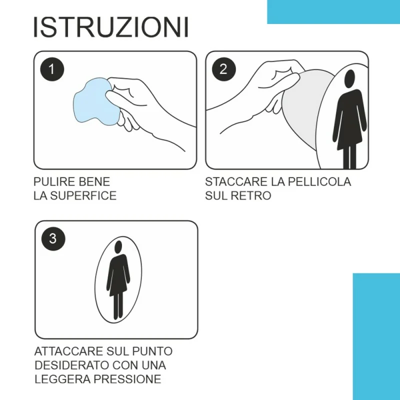 Targhetta wc con segnaletica uomini e donne,installazione con biadesivo senza foratura
