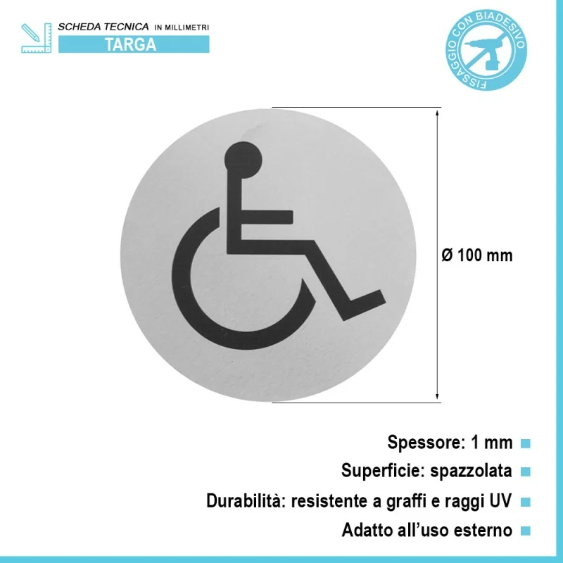 Targhetta wc disabili in alluminio spazzolato fissaggio con biadesivo