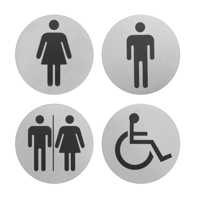 Pratiche e funzionali,le targhette wc sono realizzate in alluminio resistente con finitura spazzolata,disponibili con segnaletica uomo,donna e disabili. Grazie al design notevolmente minimal e versatile,le targhette sono ideali per uffici,ristoranti e alberghi.